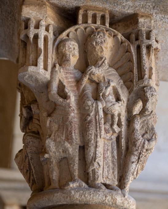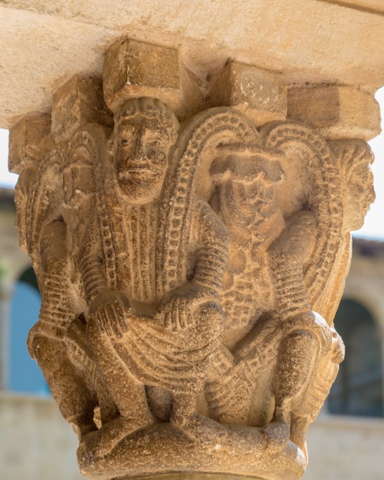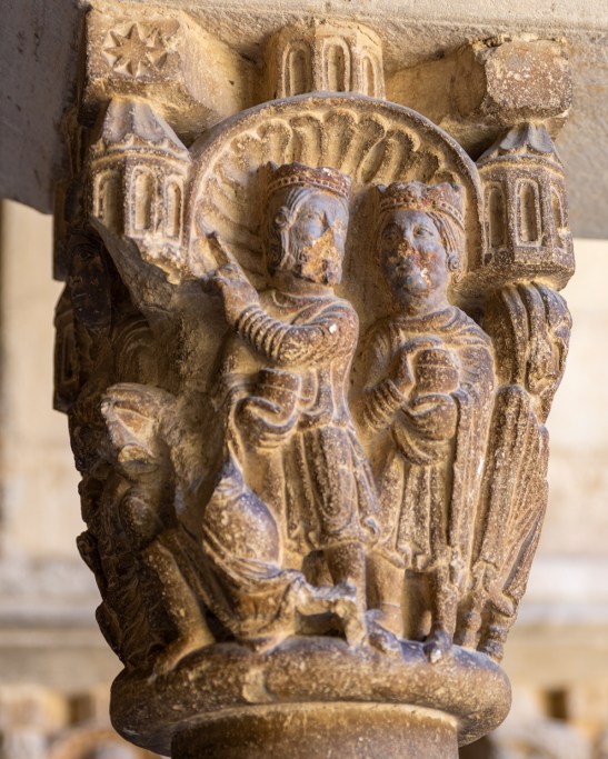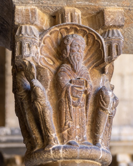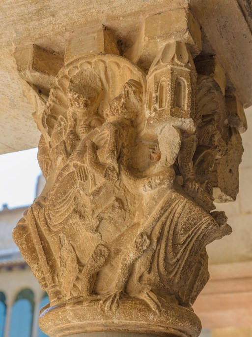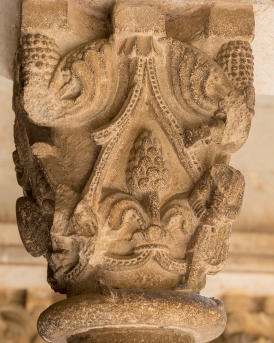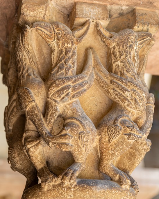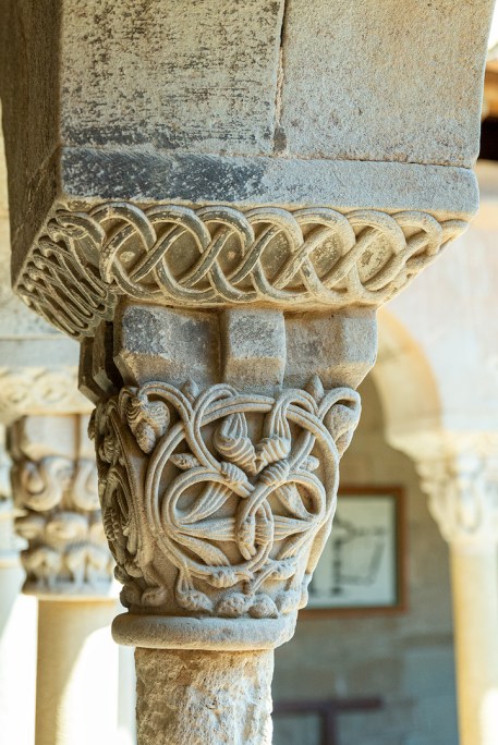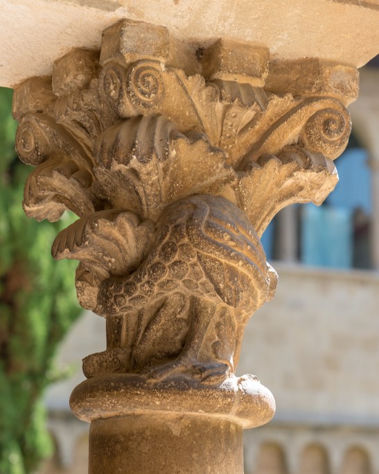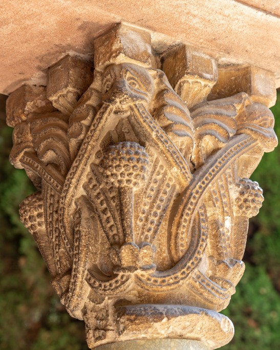 En el Claustro pueden contarse 18 columnas en cada galería con 144 capiteles en total