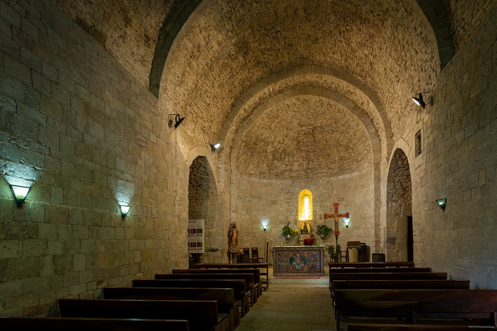 La actual iglesia monacal fue erigida bajo los criterios del románico sobre los restos de una construcción anterior aproximadamente a mediados del siglo XII y acabada en el siglo XIV ya de estilo gótico.